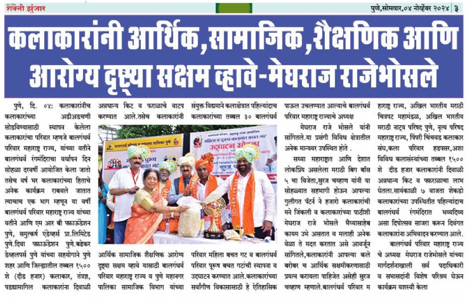 This organization is made in order to awaken the potentialities of all movie and drama artist people from Marathi industry and to create the stream of potentialities among them, to help the private social artist organizations and to assist in achieving speed in the social and economic development of Marathi film and drama industry within Maharashtra.